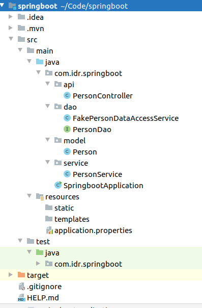 Consider revisiting the entries above or defining a bean of type 'com.idr.springboot.dao.PersonDao' in your configuration.我的应用程序结构是: