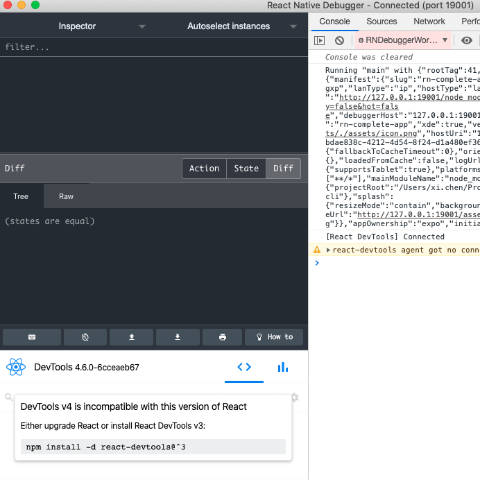 npm install -d react-devtools@^3因此,我确实运行了上面的命令&重新启动调试器,但仍然看到相同的消息。