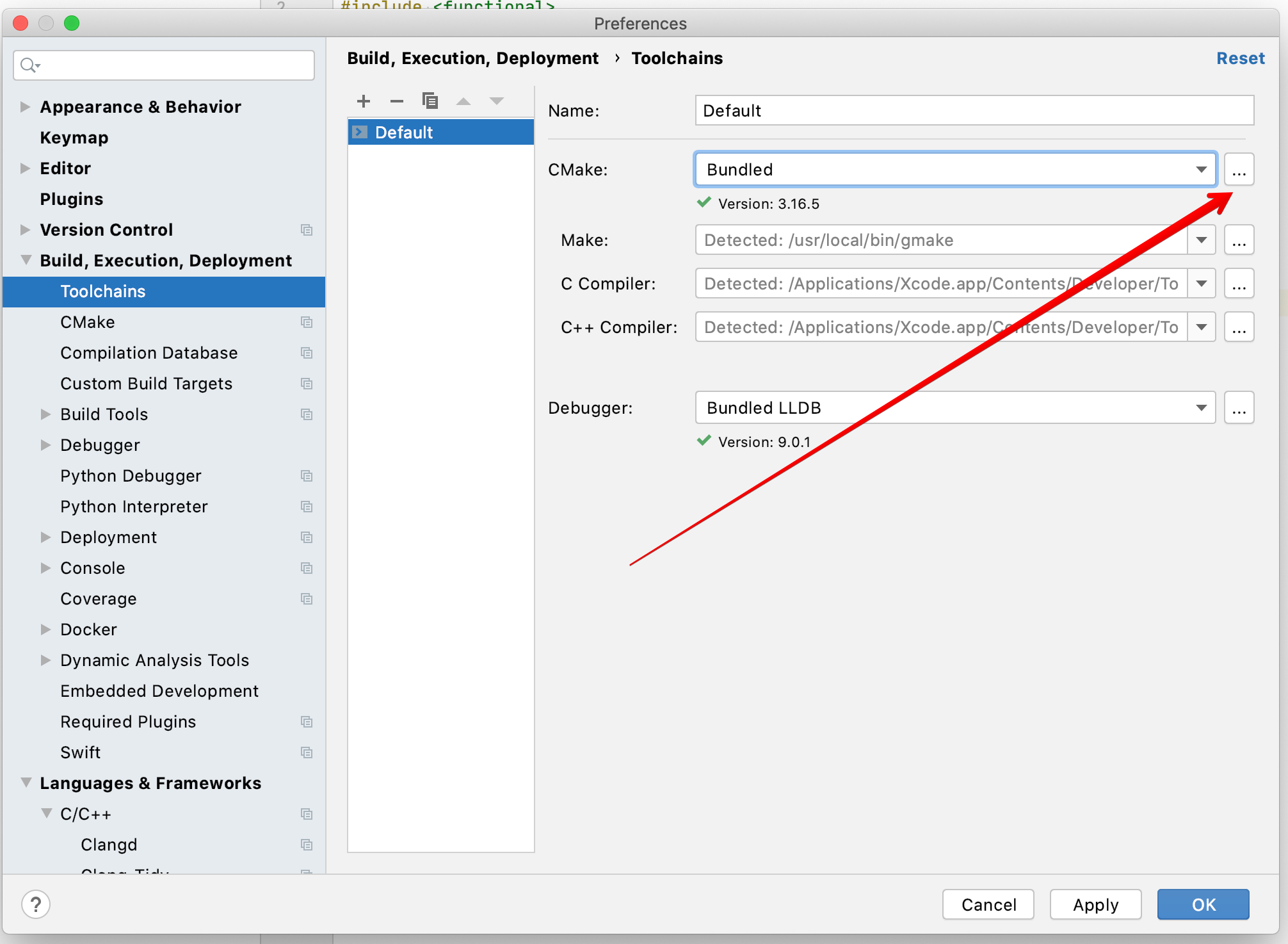 在回答您的问题时,您可以在Preferences、Execution、工具链中更改CMake可执行路径。