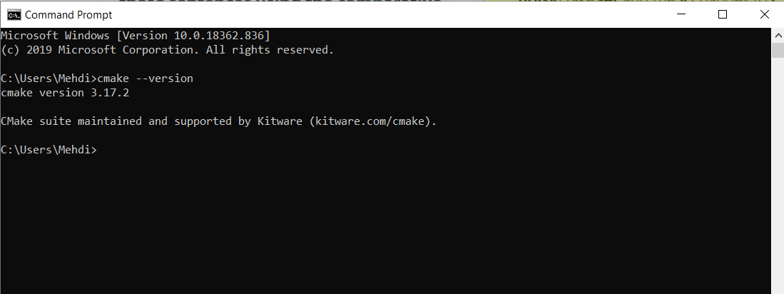 现在我有了cmake 3.17.2版本,当我签入cmd时