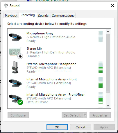 同样的情况下,如果将默认麦克风设置为任何sysvad麦克风数组,则麦克风卷级别将根本不会改变。