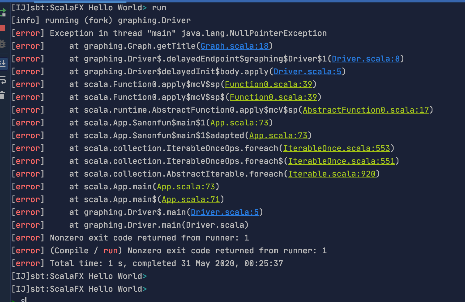 调用GraphDriver.getTitle()时要小心:这段代码需要在JAT上执行。执行可能在不同线程上运行的任何代码的标准解决方法是将其按名称传递给scalafx.application.Platform.runLater()。例如:
