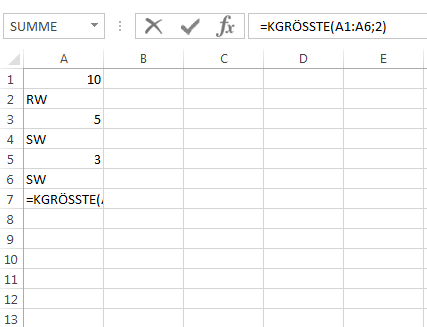 =large((If(A2="SW",A1,0),If(A4="SW",A3,0),If(A6="SW",A5,0)),2)如果所有的字符串都是= "SW",那么公式就能工作,但是一旦一行是"RW",就会返回一个错误:"#VALUE!。如果没有任何助手列或助手行,我如何解决这个问题?“