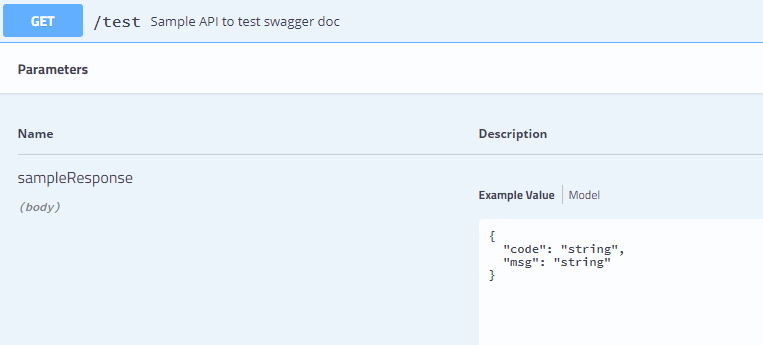 @ApiOperation(value = "Sample API to test swagger doc", response = SampleResponse.class)