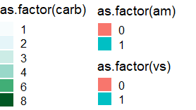 geom_bar(aes(x=as.factor(carb),fill=as.factor(carb))) +
