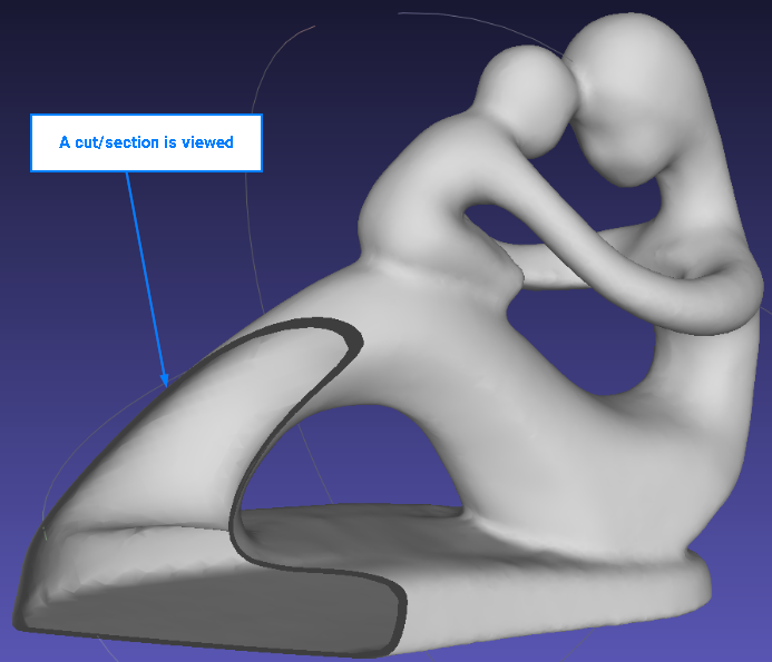 我已经看过MeshLab截图,其中的网眼是通过一个部分/剪切。我想知道我怎么能通过MeshLab做到这一点: