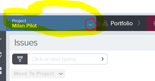 我找到了答案的问题。过滤器"by project“不像VersionOne中的所有其他过滤器一样位于”漏斗“区域。为了筛选"by project“,用户必须单击项目名称附近的箭头(左上角的蓝色方块),并选择希望在项目树中看到的项目。