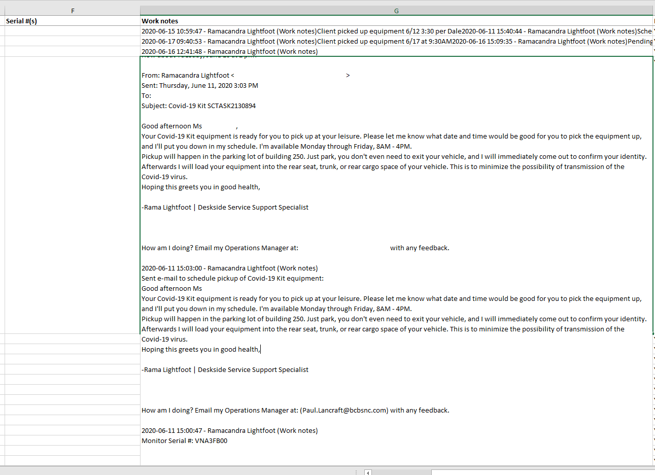 我想把图片文本中的序列号VNA3FB00复制到左边的F单元格中。如果还有另外一个序列号,也要把它复制一下。
