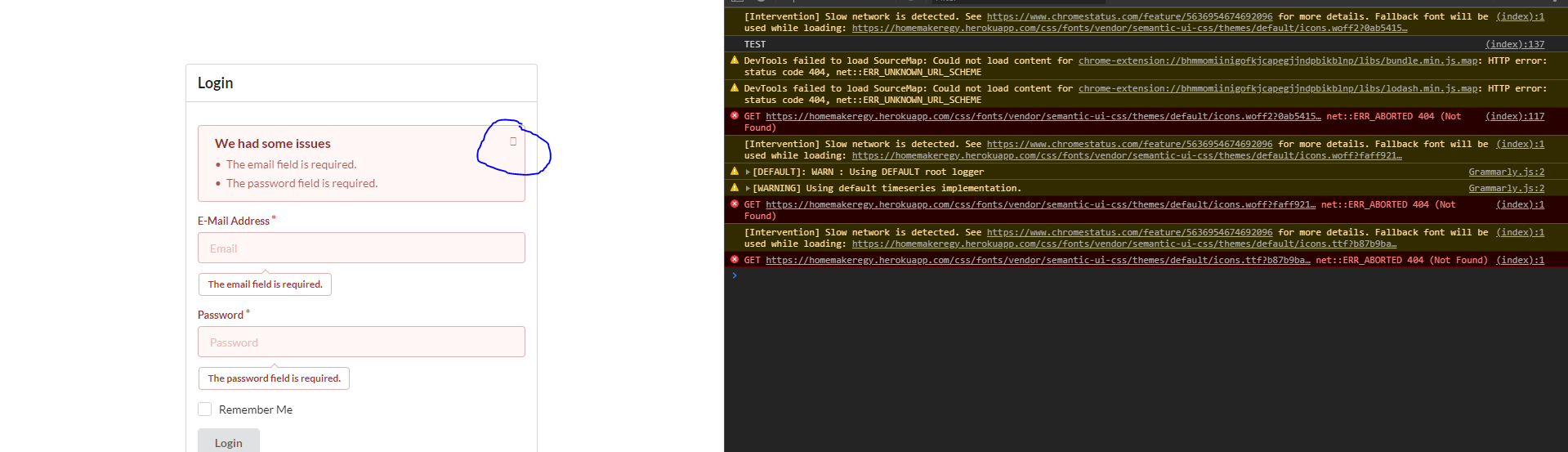 当我将项目上传到Heroku时,语义UI的图标没有显示,我得到了net::ERR_ABORTED 404 (Not Found)