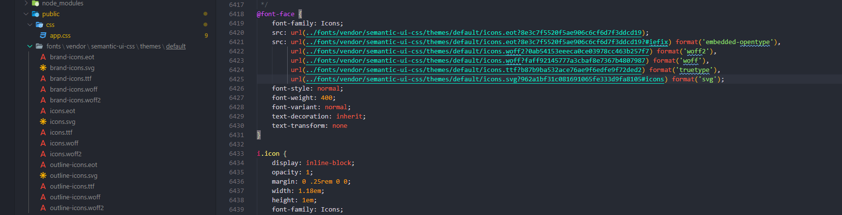 路径fonts/vendor/semantic-ui-css/themes/default由mix自动生成,所以我要做的是修改放置在node_modules\laravel-mix\src\builder中的webpack-rules.js文件。