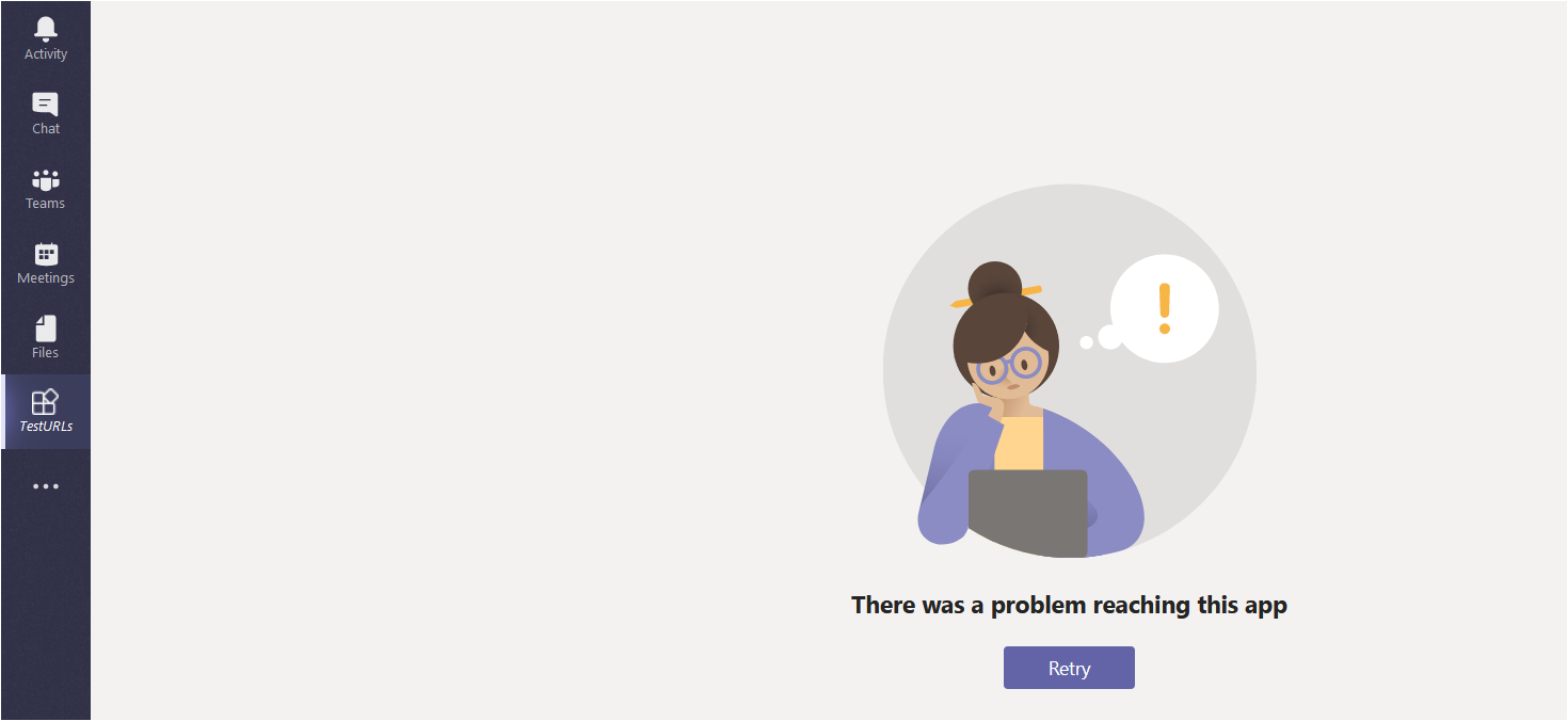tl;dr :您需要在选项卡内调用microsoftTeams.appInitialization.notifySuccess(),但是如果您需要更多信息,请参阅我在这里的问题/答案:Personal Tab Renders Fine, then a few seconds later shows "There was a problem reaching this app"