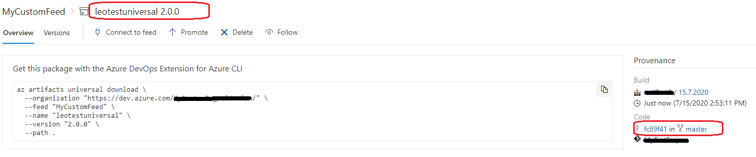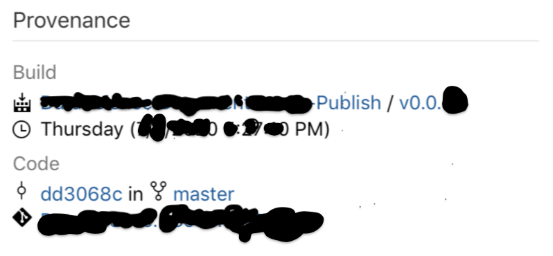 假设在Microsoft上托管的存储库的主分支上有一个发布管道。当在这个分支上完成拉请求时,就会自动生成一个人工制品。单击伪制品时,我们可以看到一个“出处”窗口,该窗口显示用于发布伪制品的代码的确切提交情况(见下图)。