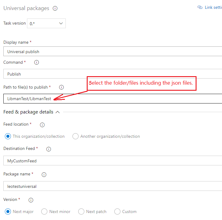 您可以查看此文档在Azure管道中发布和下载通用包和带有Azure DevOps工件的通用包以获得一些详细信息。