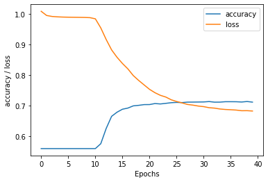 plt.ylabel('accuracy / loss')