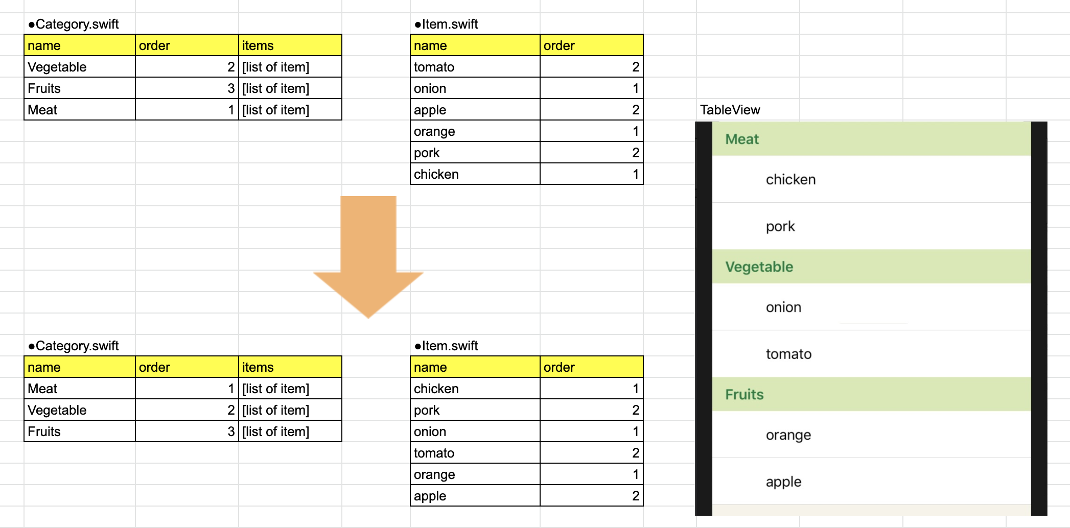 let items = List<Item>因此,如果将鸡肉添加到类别项目列表中,然后是猪肉,则该顺序将保持不变;鸡肉位于索引0,猪肉位于索引1。