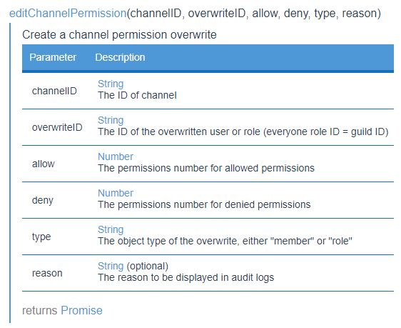 msg.channel..editPermission('user/role id','permnumallow','permnumdeny','member/roe','Reason'))