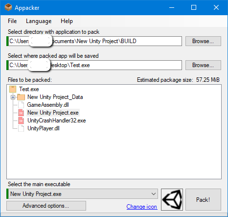 但是,您可以做的是使用pack工具,它只需将所有文件夹内容打包到一个exe文件中。