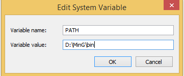 (请注意,我将D驱动器中的MinGW安装目录作为MinG的名称)。