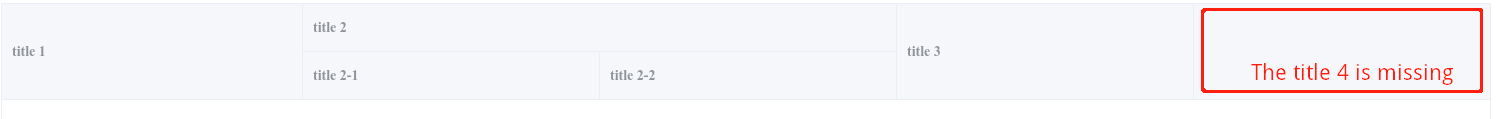 我想通过标题列表生成分组表头,但是v-for循环丢失了最后一项。