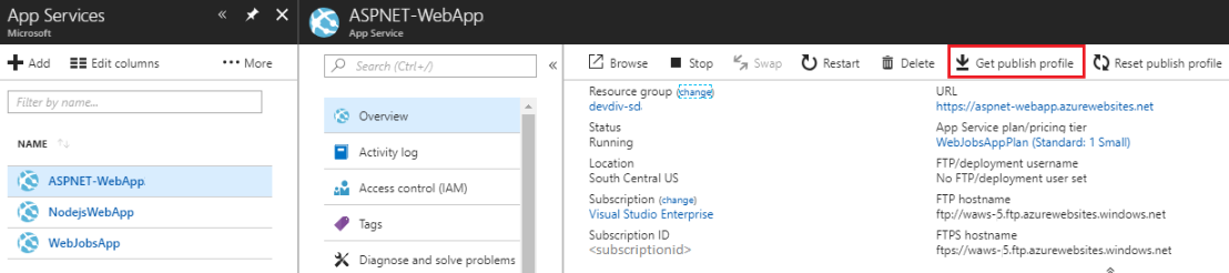 在德维普斯。我正在尝试将一个项目部署到Azure web应用程序中。如何使用发布配置文件密码?