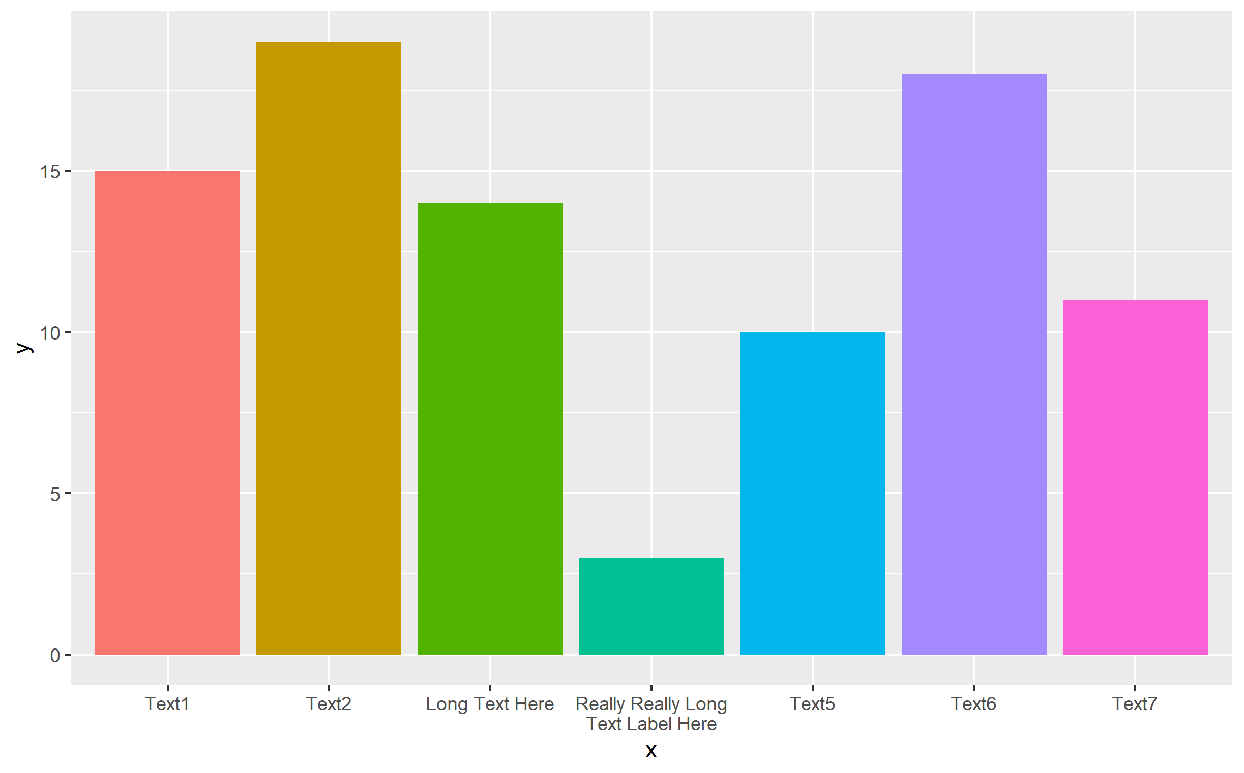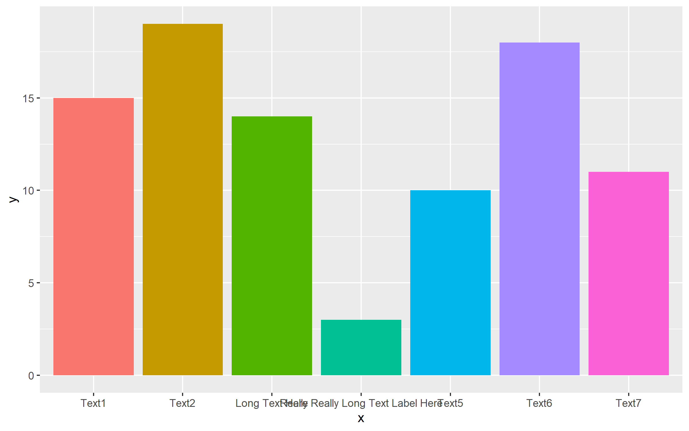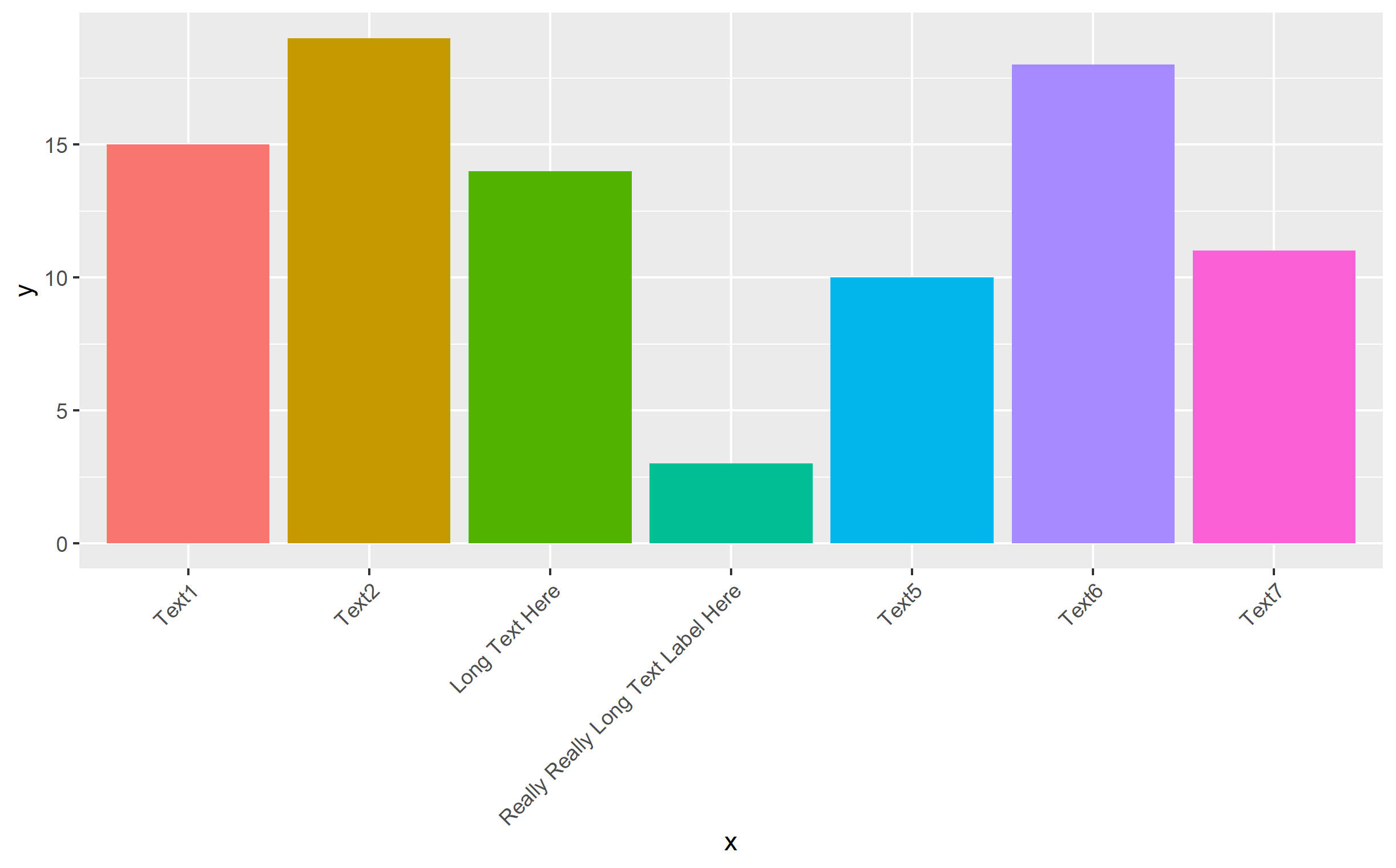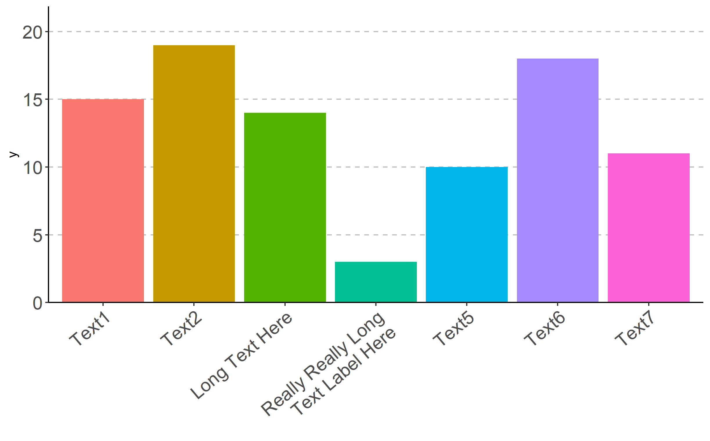 x=c('Text1', 'Text2', 'Long Text Here', 'Really Really Long Text Label Here', 'Text5', 'Text6', 'Text7'),