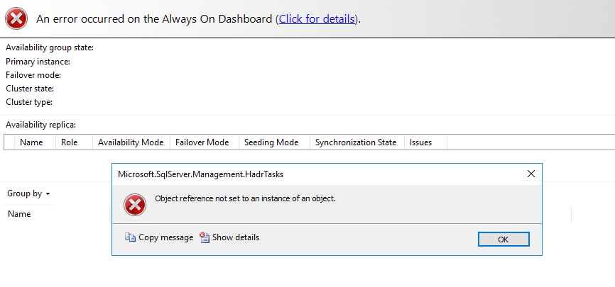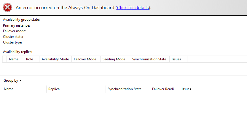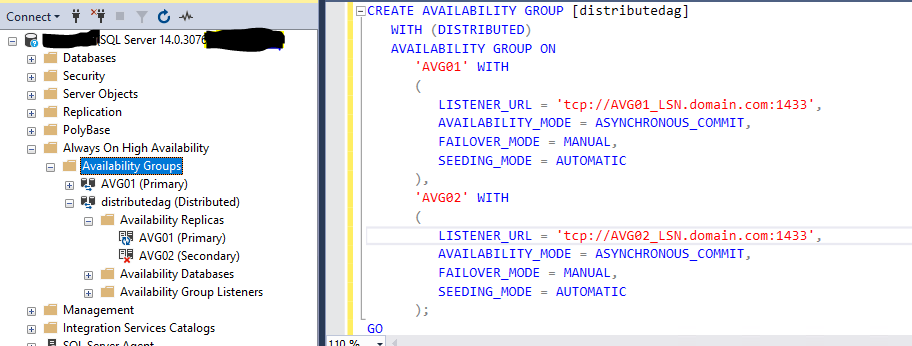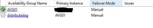 所有配置通过成功,但最终在分布式总是在第二个可用性组有一个红色的多个图标和DAVG都没有工作!