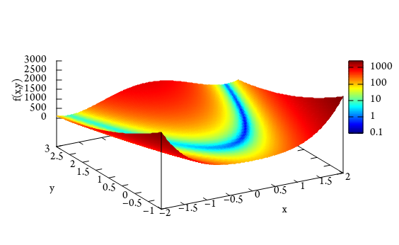 我试图在gnu图中复制以下罗森布罗克函数的图像。源维基百科.