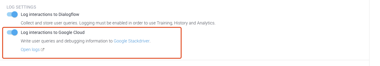 最近,我尝试从DialogFlow检索StackDriver日志(即包含与会话信息/交互有关的所有内容),以便通过启用以下选项来执行仪表板的自定义分析: