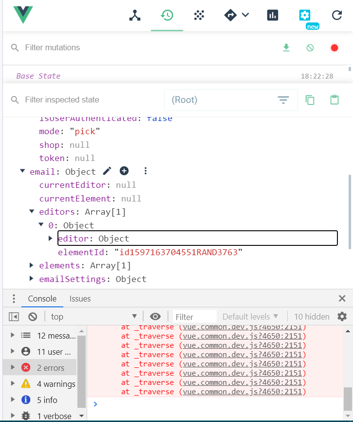 };嵌套的vuex对象位于vuex存储区的编辑器数组中,如下图所示。