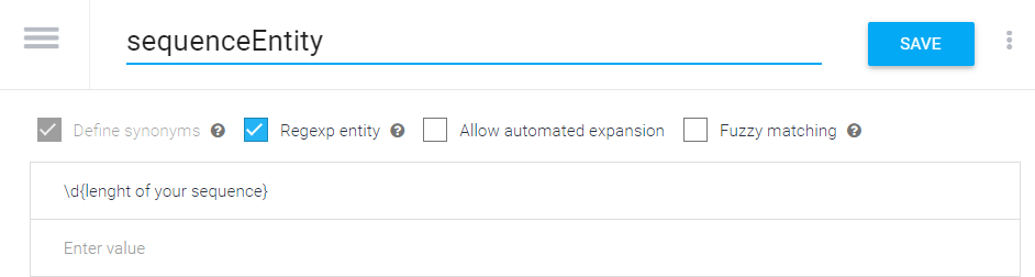 我在其他语言中也遇到过同样的问题。您最好的选择是创建具有regexp值的自定义实体,如下所示(标记Regexp实体复选框)