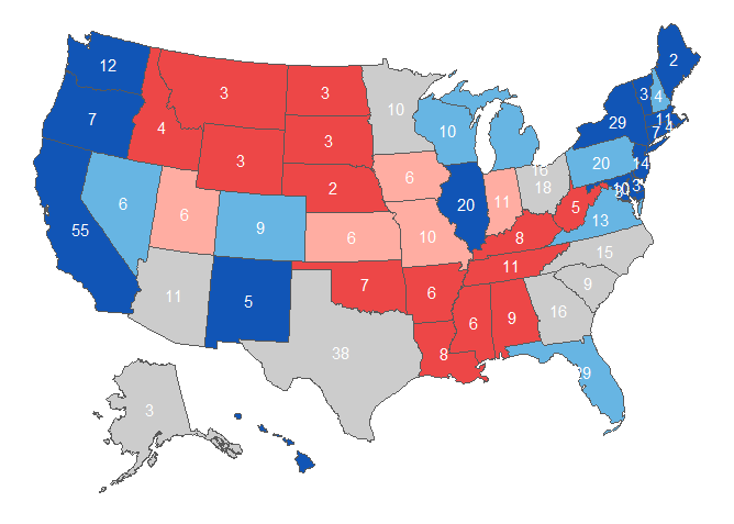 10 Florida Fla. FL 29 Leaning to Democrat 12