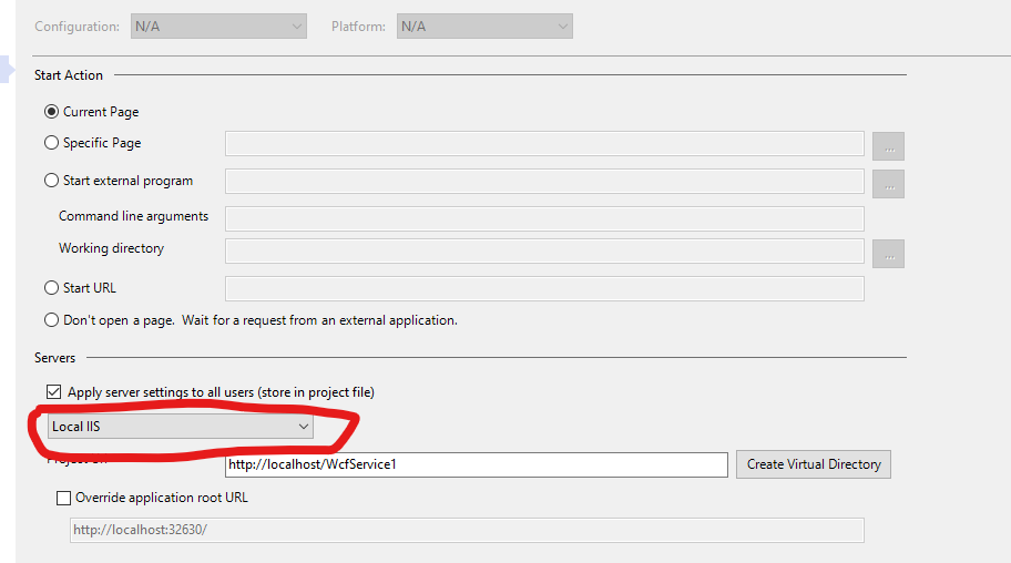 正确指定了项目设置。我重新启动了IIS,重新启动了服务,并且它成功了。非常感谢你的帮助。