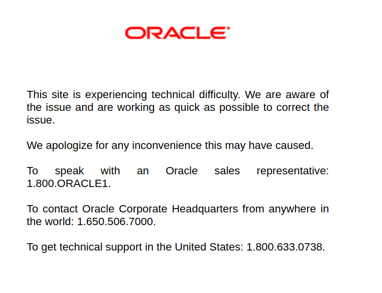 要从Oracle下载任何内容,必须有一个帐户,但是该站点基本上会崩溃,并且在任何登录尝试中都会被烧毁。