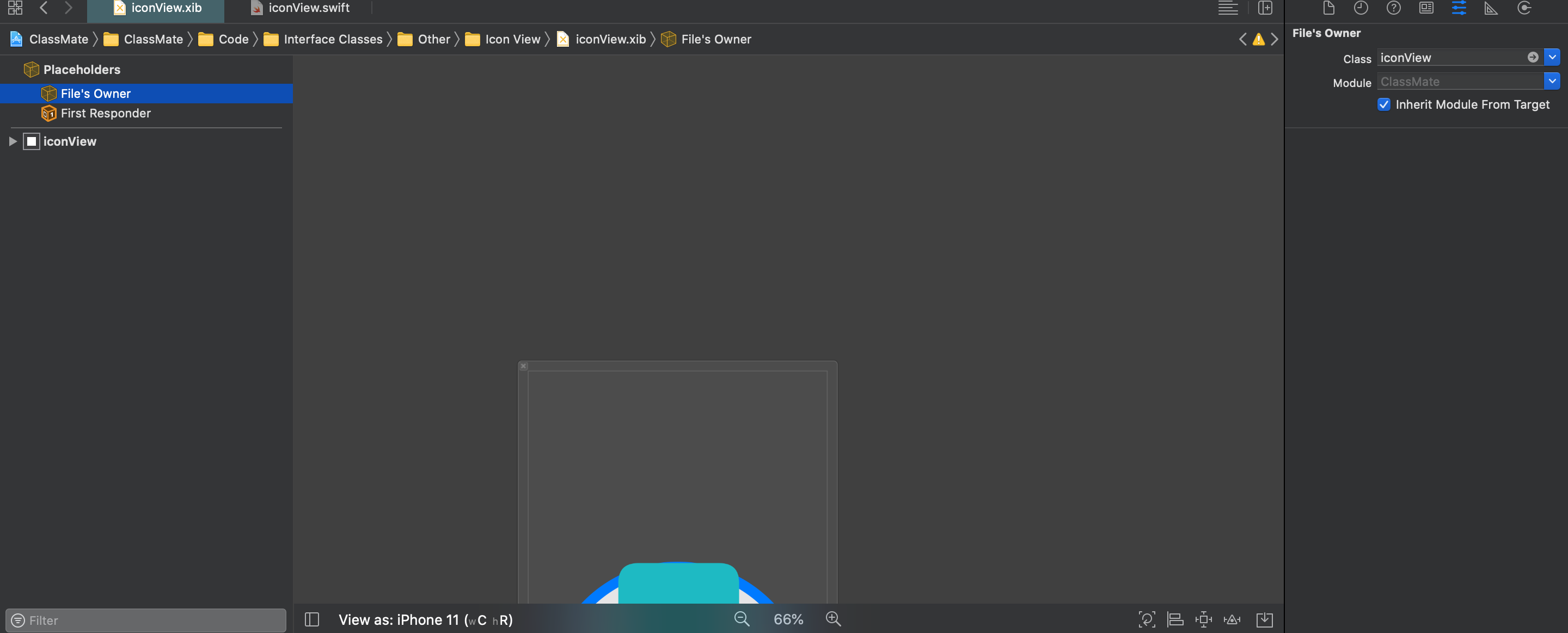 }我从本教程中的步骤8中复制了它(我只将代码中的名称更改为xib文件:"iconView")。但是由于某种原因它失败了: