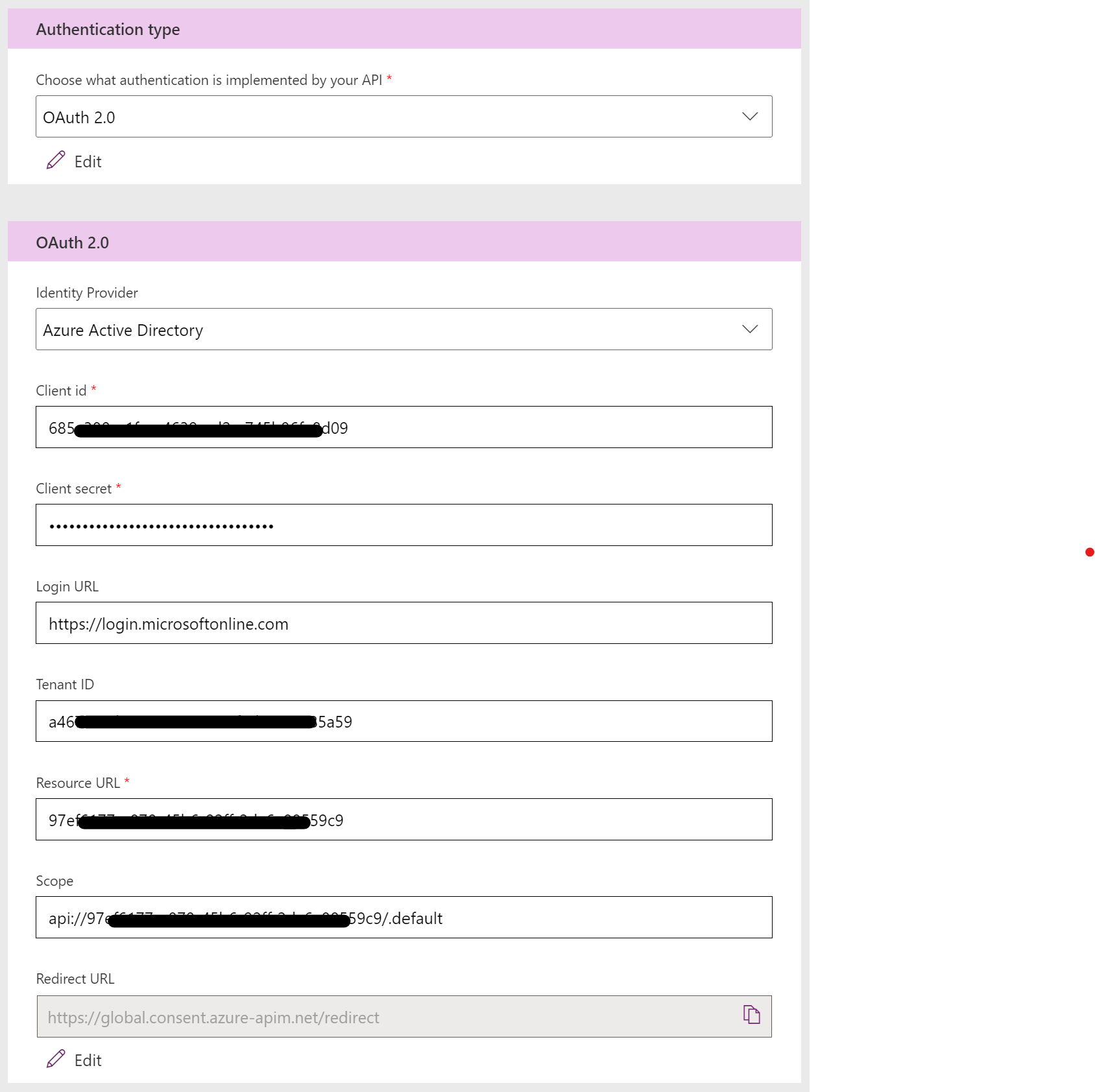 其中97e*9c9是后端应用程序注册id。我在配置自定义连接器时犯了什么错误吗?API适用于邮递员和逻辑应用程序。