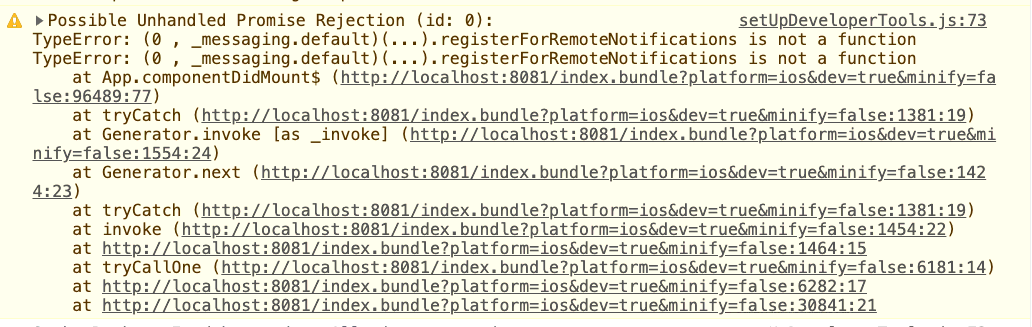 我最近已经将我的react原生版本从0.63.0降级到0.61.0。在安卓系统中,一切都很完美,但在ios模拟器&真实设备中,messaging().registerForRemoteNotifications()抛出了错误。