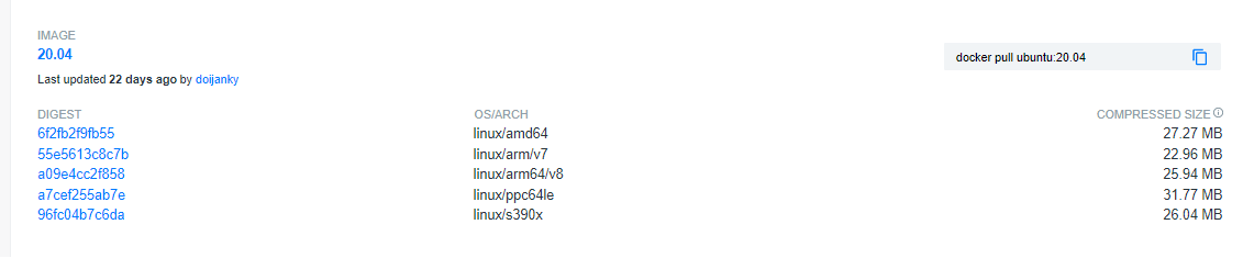 如果您运行命令docker pull ubuntu:20.04,它将提取所有的体系结构。