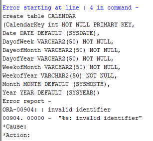 DayofMonth VARCHAR2(50) NOT NULL,