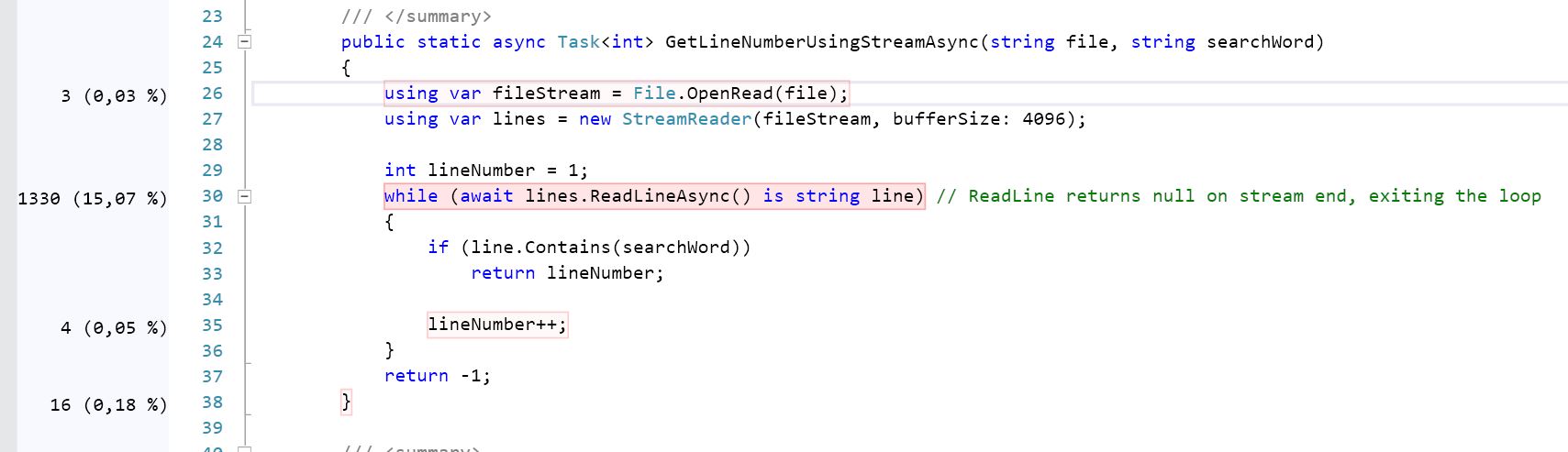 public static async Task<int> GetLineNumberUsingStreamAsync(