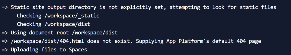 我认为现在还不可能在app平台上进行正式的水疗。更多的信息在这里https://www.digitalocean.com/community/questions/digital-ocean-apps-spa-application