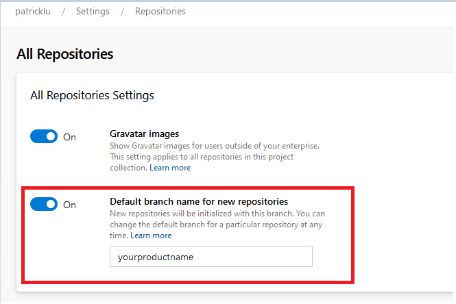 与许多组织不同,我们公司使用产品的名称作为主要/默认的分支。现在,当我们在Azure DevOps中创建一个新的Git时,默认情况下仍然是主DevOps。