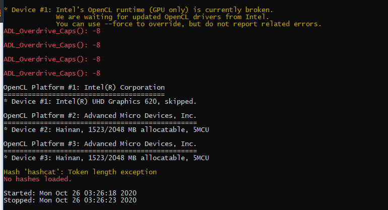 hashcat64.exe hashcat -m0 -a0 crackme.txt password.txt设备#1:英特尔的OpenCL运行时(仅GPU)目前已损坏。我们正在等待英特尔更新的OpenCL驱动程序。