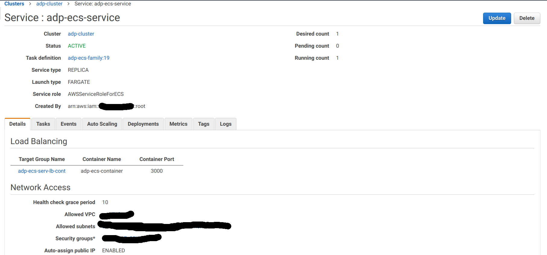 具有一个名为service:adp-ecs-service的组是运行在服务内部的一个,而具有组adp-ecs-service的是运行在服务外部的那个。有一个组名为service:adp-ecs-service的程序将自动重新启动,在ECR中标记为'latest_ci‘的图像将被重新启动,如果我停止它,但另一个将不会启动。而且这个服务一次只能有一个服务。