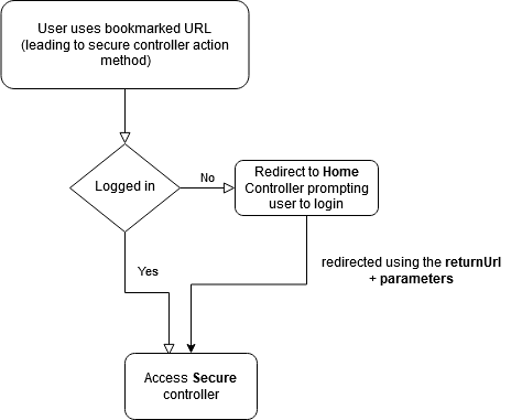}当用户被重定向(从安全控制器)到家庭控制器后,我们将传递完整的returnUrl (即reRoute URL)
