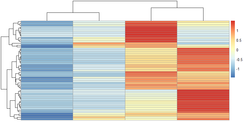 热图似乎是基于这四组的平均z得分,因为他们有两组,我想可能是团队生成了每两列的平均值,并从这四组的平均值推导出z-得分。我试过这段代码,但我觉得被卡住了:
