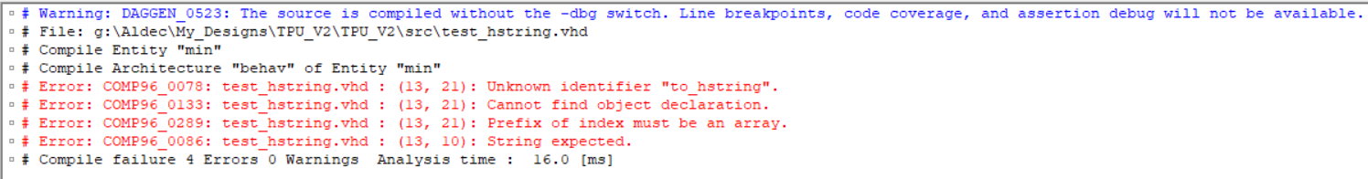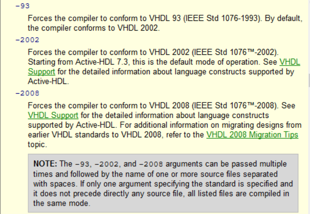 在写这个问题的时候,我又读了一遍(How to write an integer to stdout as hexadecimal in VHDL?),发现提到了VHDL-2008。之后,我检查了编译命令(由Active-HDL自动生成),结果发现VHDL-2002是编译命令的默认命令: