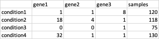 是否有可能根据最后一列(样本)样本=测序基因组的数量,在R中规范此表。所以我想得到所有基因在所有条件下的正常分布。