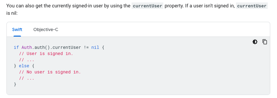 } else if let user = Auth.auth().currentUser {