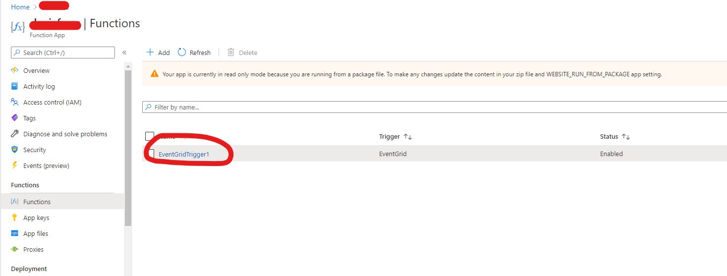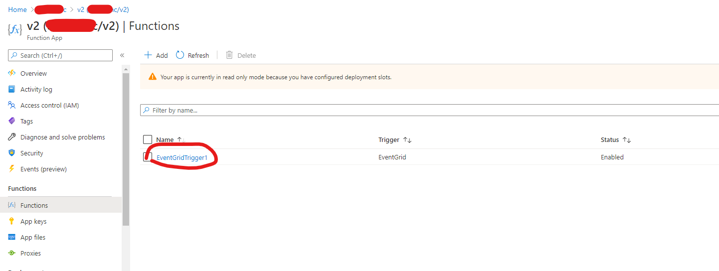 重点是,确保您在暂存槽中的函数名与生产槽相同,因此事件订阅将在相同的端点中找到它。