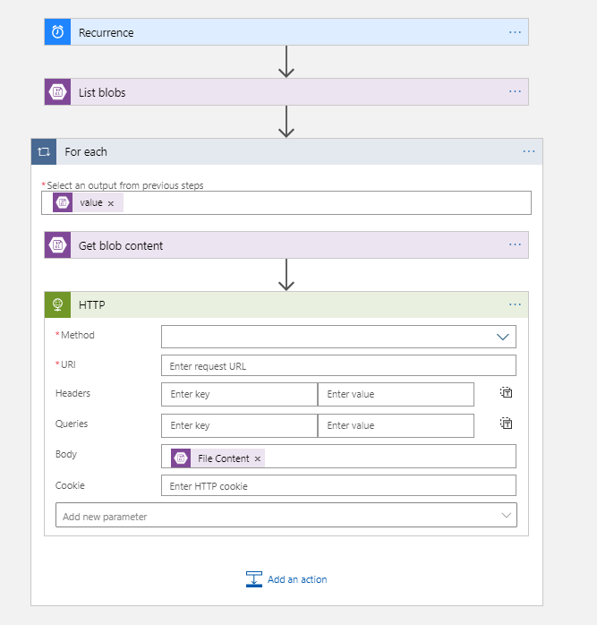 我试图弄清楚Azure LogicApp是否可以用于文件/文档从Azure Blob存储到自定义服务的迁移,在那里我们有REST。下面是我现在的需求清单: